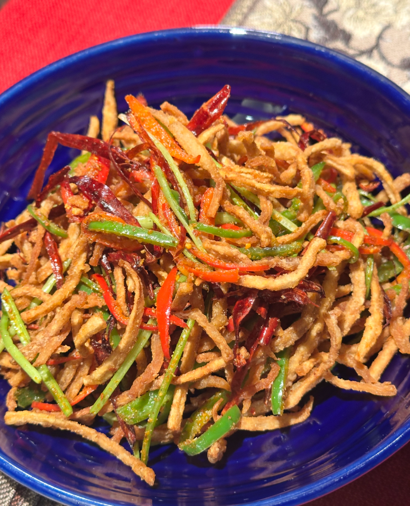 Then comes the Wok-Tossed Shredded King Mushroom, which will have you questioning everything you know about fungi. It looks nothing like mushroom and tastes even further from it—crunchy, slightly smoky, with just a hint of comforting mush. For those averse to the word “moist,” this might be the conversion therapy you didn’t know you needed.